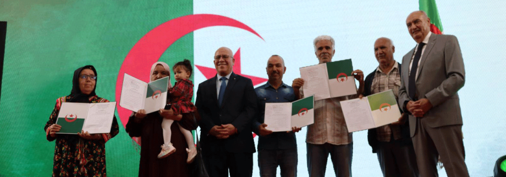 وعلى هامش افتتاح الصالون، أشرف السيد الوزير، رفقة السيد والي الولاية على مراسم تسليم عقود امتياز لفائدة 15 فلاحا في إطار تحويل حق الانتفاع الدائم إلى حق الامتياز لاستغلال الأراضي التابعة للأملاك الخاصة للدولة، وكذا امضاء اتفاقيتي شراكة بين الصندوق الجهوي للتعاون الفلاحي مع كل من التعاونية الولائية CAPTO والتعاونية الفلاحية فرع الحليب واللحوم الحمراء تيرقا أوفلاح THIRGA OUFELAH.
